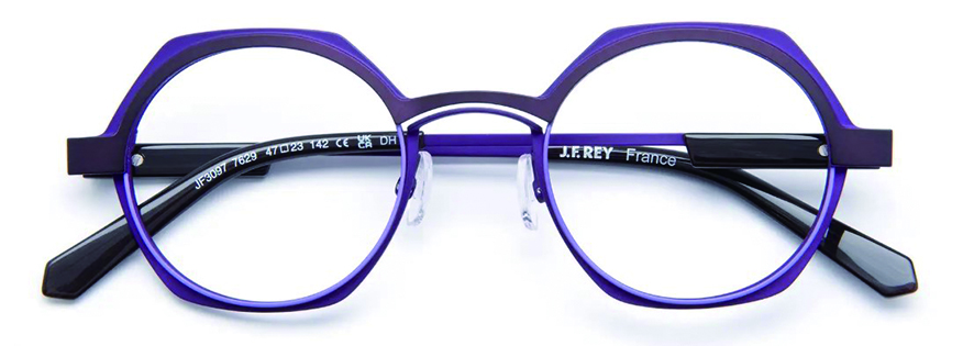 제이에프레이 JF3097 7629 모델은 유려한 라인이 돋보이는 폴리곤 형태 쉐입이 특징인 세련된 초경량 메탈 제품이다. 전면 쉐입은 독특한 그래픽 라인과 은은하고 우아한 컬러가 특징이며, 고급스러운 메탈 템플은 조화로운 컬러의 아세테이트 트림 조각으로 장식돼 멋스럽다.