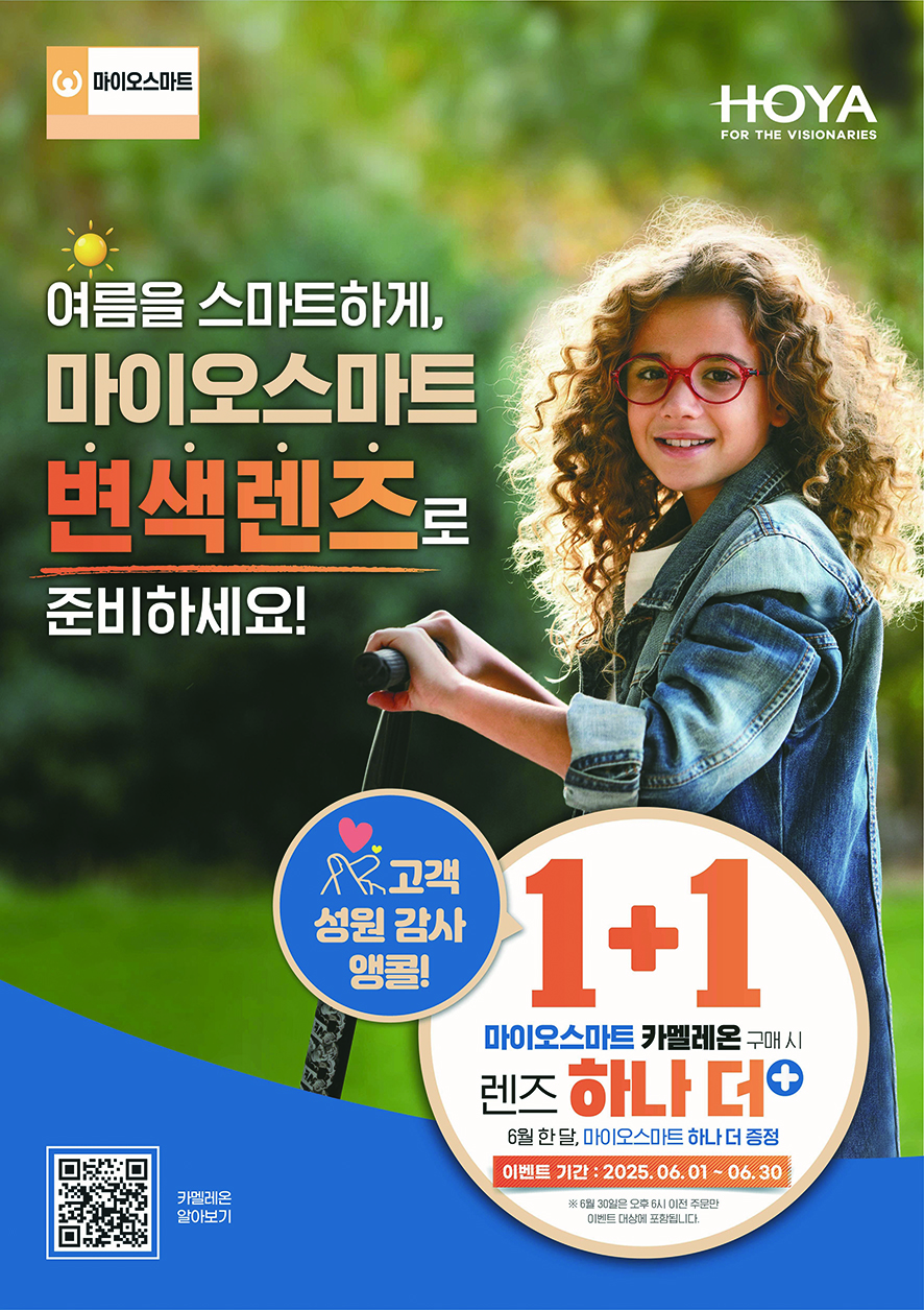 한국호야렌즈 정병헌 대표는 “아이들의 눈은 성인보다 자외선에 더욱 민감하다”며 “이번 1+1 이벤트는 자외선 차단과 근시 억제를 동시에 실현할 수 있는 좋은 기회다. 많은 부모님들께 실질적인 도움을 드릴 수 있을 것”이라고 말했다.