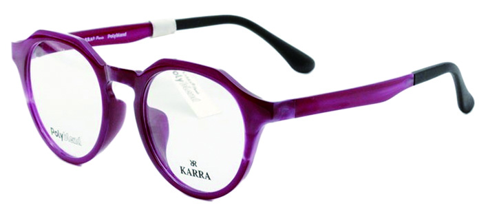 나도코리아에서 판매하고 베르디아이웨어에서 제조한 카라 PB-5012 바이올렛 컬러 모델은 아세테이트의 광택과 느낌은 살리되 아세테이트 보다 가볍고 변형이 일어나지 않는 친환경 폴리머 소재를 사용한 폴리블랜드 라인 대표 모델이다. 가벼운 무게감으로 인해 착용감이 탁월하다.