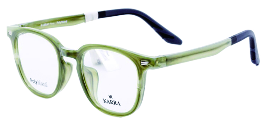 나도코리아에서 판매하고 베르디아이웨어에서 제조한 카라 PB-5018 카키 컬러 모델은 아세테이트의 광택과 느낌은 살리되 아세테이트 보다 가볍고 변형이 일어나지 않는 친환경 폴리머 소재를 사용한 폴리블랜드 라인 대표 모델이다. 가벼운 무게감으로 인해 착용감이 탁월하다.
