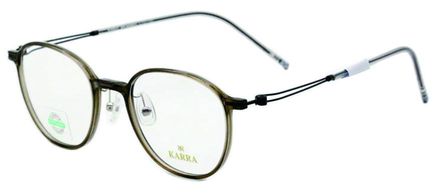 나도코리아에서 판매하고 베르디아이웨어에서 제조한 카라 KR-291 브라운 컬러 모델은 알러지 없이 가벼운 무자성 콤비 제품이다. TR 소재 쉐입과 무자성 스테인리스 템플이 가볍고 편안한 착용감을 자랑한다. 유니크한 힌지와 템플라인도 매력적이다.