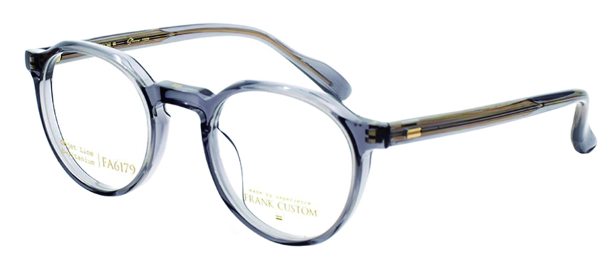 프랭크커스텀 Lemer / FA6179 col.5 모델은 빛과 그림자 대비가 특징인 바로크 건축에서 영감을 받은 보스턴 쉐입 아세테이트 소재 제품이다. 섬세한 아세테이트 커팅으로 표면이 빛을 받을 때 나타나는 깊은 컬러감이 매력적이다. 브랜드 심벌을 활용한 장식이 5발 리벳힌지와 결합돼 견고하고 안정적이다.