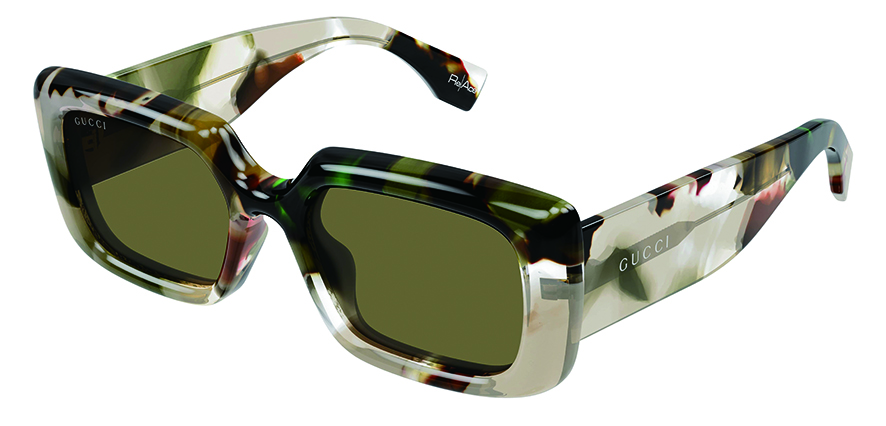 구찌(Gucci)가 브랜드 헤리티지를 담아 독특한 소재와 세밀한 디테일을 통해 선보이는 리에이스(ReAce) 소재 한정판 에디션은 아세테이트 폐기물을 100% 재활용했다. GG1906S 모델은 두꺼운 직사각형 프레임 선글라스로 구찌 로고가 템플에 새겨져 있다.