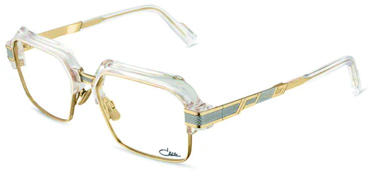 카잘 6041-002 모델은 아이브로 스타일 쉐입과 카잘 특유의 골드 컬러 배리에이션이 매력적인 제품이다. 힌지와 브릿지, 템플라인에 새겨진 도트 무늬가 포인트이며, 레이어드 형태로 이뤄진 쉐입 상단도 고급스러움을 더해준다.