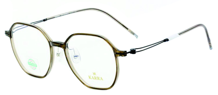나도코리아에서 판매하고 베르디아이웨어에서 제조한 카라 KR-292 브라운 컬러 모델은 알러지 없이 가벼운 무자성 콤비 제품이다. TR 소재 쉐입과 무자성 스테인리스 템플이 가볍고 편안한 착용감을 자랑한다. 유니크한 힌지와 템플라인도 매력적이다.