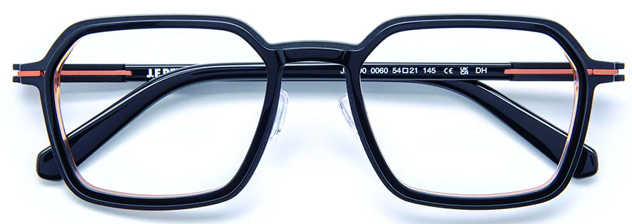 제이에프레이 JF3090 0060 모델은 메탈과 아세테이트를 결합한 세련된 프레임 디자인이 특징으로, 독특한 더블 브릿지가 모던한 느낌을 연출해준다. 기하학적인 선들은 현대적이고 강렬한 느낌을 더하며, 세부적인 부분의 세련된 디자인이 완벽하게 조화를 이루고 있다.