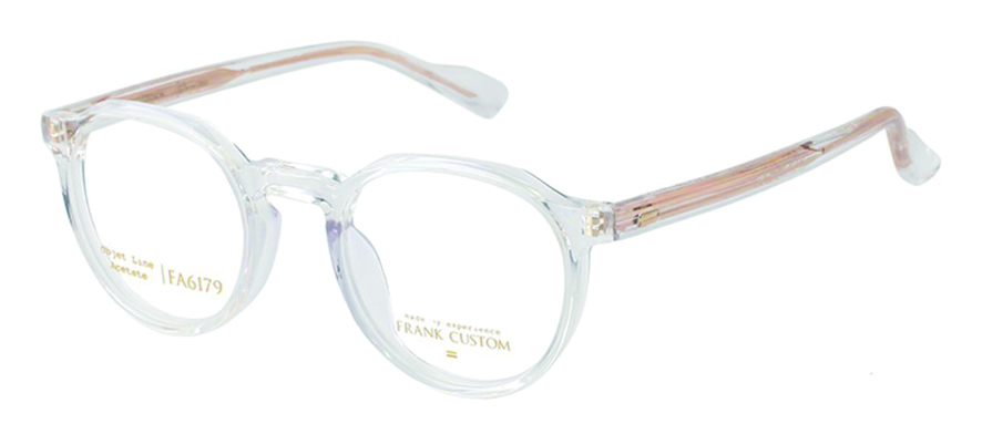 프랭크커스텀 Lemer / FA6179 col.4 모델은 빛과 그림자 대비가 특징인 바로크 건축에서 영감을 받은 보스턴 쉐입의 아세테이트 제품이다. 섬세한 커팅으로 깊은 컬러감이 매력적이며, 브랜드 심벌을 활용한 5발 리벳 힌지가 견고한 안정감을 더해준다.