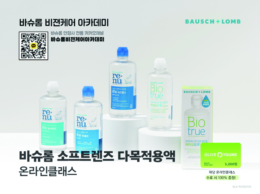 이번 온라인클래스는 ‘바이오트루 다목적용액’과 ‘리뉴 센서티브·후레쉬·어드밴스 다목적용액’ 제품의 주요 특장점을 소개하는 내용으로 구성돼 있다. 이벤트 참여는 바슈롬과 거래 중인 안경원에서 근무하는 안경사라면 누구나 자유롭게 참여할 수 있다.