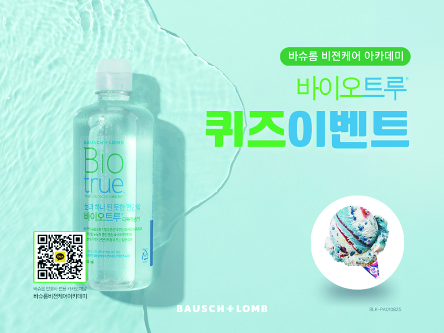 바슈롬코리아(대표 김형준) 비젼케어 아카데미가 11일부터 13일 자정까지 3일간 안경사 대상 퀴즈 이벤트를 진행한다. 퀴즈 이벤트 주제는 바슈롬 프리미엄 관리용액 바이오트루 다목적용액 제품에 대한 내용이다. 바슈롬 거래 안경원에서 근무하는 안경사라면 누구나 쉽게 참여할 수 있다. 바슈롬 거래 안경원에서 근무하는 안경사 중 퀴즈 정답 선착순 200명에게 ‘베스킨라빈스 싱글레귤러’ 모바일 쿠폰을 증정할 예정이다.
