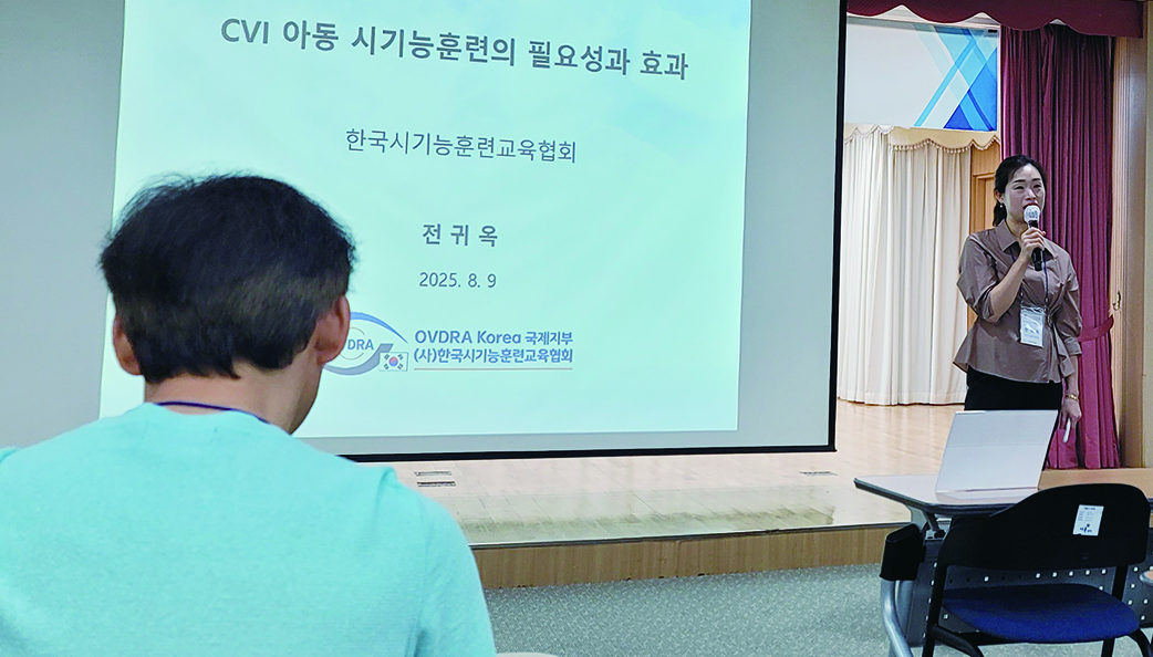 신효순 이사장은 특별세션에서 ‘동안신경마비로 인한 어지럼증과 복시에 대한 시기능재활 사례연구’를 발표했다. 내용은 뇌신경 손상으로 복시·균형 문제를 시기능재활로 개선한 임상사례들을 소개했다. 이어 저시력분과에서는 윤정호 국제이사가 ‘저시력 아동 시기능훈련’ 사례를 발표하며 학습 접근성과 생활 적응 향상을 위한 훈련 전략을 공유하기도 했다.