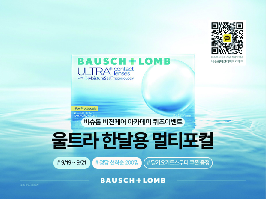 이번 퀴즈 이벤트 주제는 디지털 세대를 위한 노안 렌즈인 바슈롬 울트라 한달용 멀티포컬 제품에 대한 내용이다. 바슈롬 거래 안경원에서 근무하는 안경사라면 누구나 쉽게 참여할 수 있으며, 퀴즈 정답 선착순 200명에게 ‘메가커피 딸기요거트스무디’ 모바일 쿠폰을 증정할 예정이다.