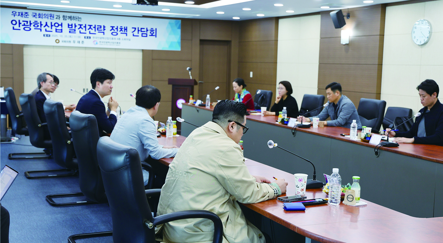 한국안광학산업진흥원(원장 김종한·이하 진흥원)이 우재준 국회의원(대구 북구 갑·국민의힘)이 참석한 가운데, 국내 안광학 제조기업 대표들과 ‘안광학산업 발전전략 정책 간담회’를 지난달 25일 개최했다.
