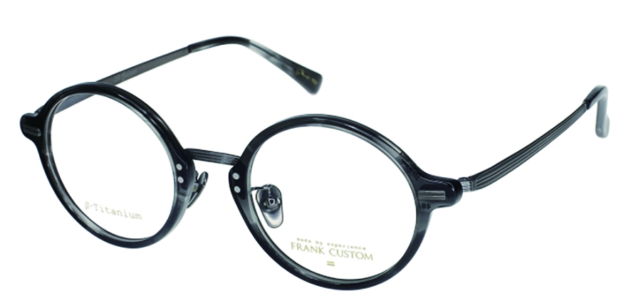 프랭크커스텀 FA6156 col.3 모델은 아세테이트와 티타늄 소재를 결합한 1920년대 감성을 담은 라운드 쉐입 콤비네이션 제품이다. 브릿지 및 코 패드, 템플에 뛰어난 내구성과 탄성을 가진 티타늄 소재를 사용했으며, 브랜드 심볼을 리벳팅으로 엔드피스에 결합해 제품 완성도와 강도를 높였다.