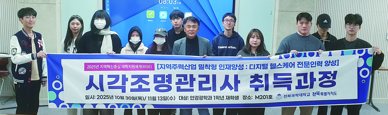학생들의 높은 관심 속에 안경광학 분야의 새로운 진로 가능성을 소개한 이번 강의는 2025년 지역혁신중심 대학지원체계의 지역주력산업 밀착형 인재양성 사업 일환으로 추진된 ‘디지털 헬스케어 전문인력 양성 과정’ 내에서 진행됐다.