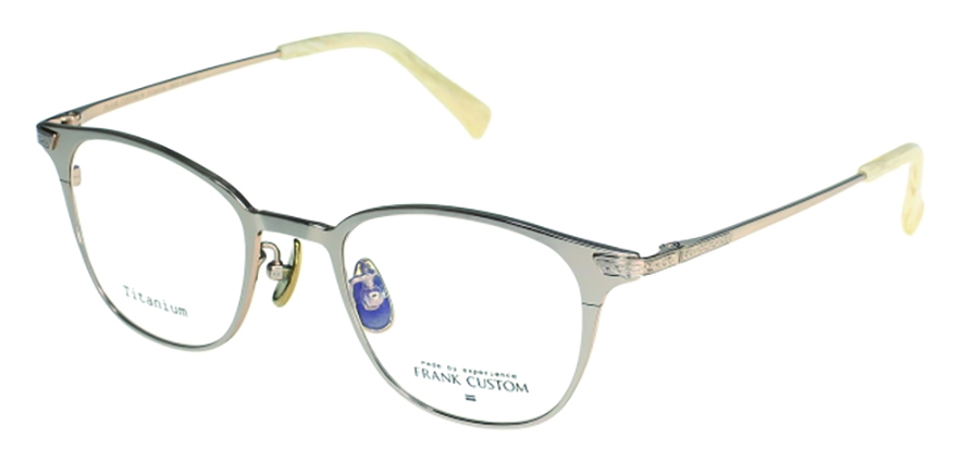 프랭크커스텀 FT7128 col.4 모델은 엔틱한 골드컬러가 매력적인 제품으로 티타늄 소재 쉐입과 스테인리스틸 소재 템플이 프랭크커스텀 특유의 댄디한 디자인과 어우러져 높은 완성도를 자랑한다. 힌지와 템플라인으로 이어진 고급스러운 각인 디자인이 포인트다.