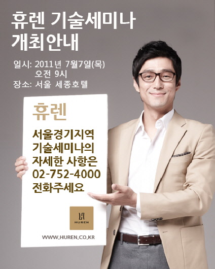 한국형 안경렌즈 대표 브랜드 휴렌이 오는 7월 7일 서울 중구 충무로에 위치한 세종호텔 오키드홀에서 '제1회 안경렌즈 기술세미나(hols 2011 : huren optical lens seminar 2011)'를 개최한다.