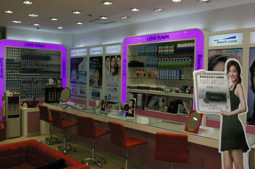 렌즈타운과 가맹계약을 맺고 운영하면서 매출이 10%∼20%정도 향상되었다고 한다. 콘택트렌즈 전문코너인 렌즈타운의 인테리어는 남다른 면이 있다. 컬러에서부터 산뜻한 느낌이 먼저 다가오고, 글로벌기업들의 광고이미지가 눈길을 끌면서 색다른 매장 분위기를 연출한다. 편안하고 즐거운 마음으로 제품을 선택할 수 있도록 한다는 가맹본부의 마케팅 전략이 소비자들의 발길을 사로잡는다는 평가를 받으면서 안경원들의 선택이 늘어나고 있는 것이다. 안 원장도 여기에 매료되었다고 한다.