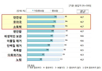 특히 mps를 구입할 때 가격이나 행사보다는 지인 또는 전문가의 추천에 가장 많은 영향을 받는 것으로 나타났으며, 믿을 수 있는 브랜드가 주요 고려사항으로 조사됐다. 다음으로 mps를 선택하는데 가장 중요하게 생각하는 속성은 안정성, 무자극, 소독력 순이었다.