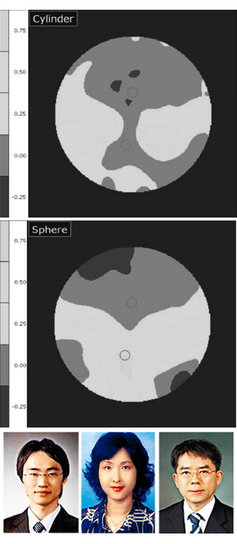 자동굴절검사기(natural vision-k 5001, shinnipon, japan)를 이용하여 굴절이상도를 3회 반복 측정하고 그 평균값을 구하여 기록하였다.