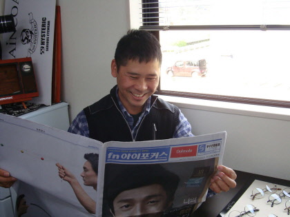 와까바야시 : 대학을 졸업하고 캐나다에서 2년동안 머물렀습니다. 워킹홀리데이 였는데 좋은 경험이였고 무엇보다 영어를 습득하게 된점이 좋았습니다. 일본으로 귀국해서 한 동안 호텔의 프론트 데스크에서 일했었고 안경을 시작한 것은 2005년 후쿠이고끼에 입사하게 되면서 입니다. 결혼을 앞두고 안정적인 직장을 찾는중에 영어를 사용할수 있는점에 메리트를 느껴서 후쿠이고끼 무역부에 입사하게 되었습니다.