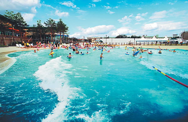 전장 50m, 폭 45m 규모의 복합 물놀이시설인 옥외파도풀 샤크웨이브도 ‘명물’이다. 1.2m 높이의 여섯 가지 파도가 다양한 재미를 전해주고 주변 비치를 이국적으로 꾸며 남국의 어느 해안에 온 듯한 착각을 불러일으킨다.