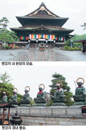이 문에서부터 참배길로 이어진 거리가 문전시(門前市)로 발전된, 현재 나가노의 원점이다. 나가노의 젠코지를 일본인들은 ‘일생에 꼭 한번 가볼만한 곳’이라고 말한다. 아마도 그리 강조하는 절대성에는 가장 일본스런 문화와 깊은 역사가 살아 숨쉬기 때문인 듯하다.
