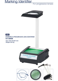 마킹식별기는 이태리 첸트로스타일사에서 개발된 제품으로 cr39 및 pc렌즈의 제조사 설계점을 손쉽게 찾을 수 있도록 설계되어 있다. 특수하게 제작된 산광기와 확대경을 통하여 각 제조사별 누진렌즈 설계점, 렌즈타입, 도수 및 이의 식별마크를 선명하게 볼 수 있다.