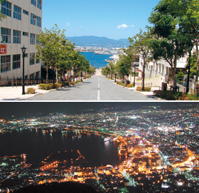 해안과 바로 접해 있어 예로부터 서양의 다양한 문화가 유입·융합된 북국 하코다테는 지금도 이국 정서가 감도는 독특한 거리를 형성하고 있다. 시내에서 조금 떨어진 남쪽 항구 주변에는 마치 샌프란시스코를 연상케 하는 이국적인 건물들이 낭만을 더해준다. 또 밤이면 언덕위에 길게 늘어선 가로등 불빛들이 가득해 일본 드라마나 cf의 배경으로도 자주 등장한다. 특히 바다가 한 눈에 들어오는 하치만자카(八幡坂)는 가장 아름다운 야경을 볼 수 있는 곳으로도 유명해 많은여행객이 찾아들고 있다.