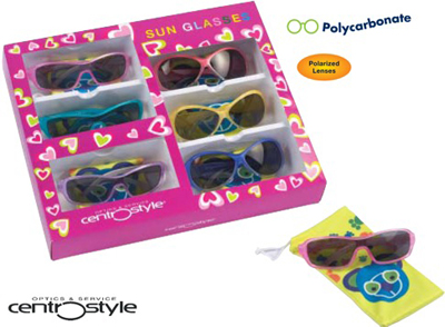 연령대 별로 세분화 되어 있고, 36∼52mm 에 이르는 다양한 사이즈로 제작 된 것이 특징인, 어린이 전용 선글라스를 소개한다.제품의 구성은 스포티한 스타일과 큐트한 분위기의 디자인까지 매우 다양하며 대부분의 상품에 편광렌즈를 적용하여 어린이용 선글라스지만, 전문 선글라스로써의 손색이 없다.또한, 합리적인 가격대로 소비자들에게 크게 어필하고 있다.031-697-5100