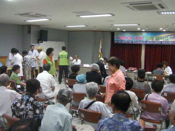 건강사회를 위한 안경인회(건안회 대표 박수하)는 지난달 22일에 김천노인종합사회 복지관에서 검안행사를 개최하였다. 이날 김천시 종합자원봉사센터와 함께한 195회 행사에서는 지역 노인들 205명에게 시력 검안과 함께 근용안경 세트를 제공하여 큰 호응을 얻었다.