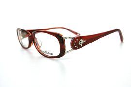 와인빛 컬러로 우아함이 돋보이는 성인용 아이웨어이다. 전면 프레임과 템플의 연결부분이 오픈형으로 제작되어 미적감각을 높이고 적당한 곳에 위치하고 있는 중세풍 엠블럼과 보석장식이 오버스럽지 않은 절제 된 여성미를 잘 표현하고 있다.031-318-7737