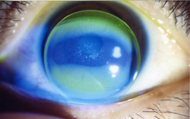 다섯 번째로 재질의 산소 투과율에서 (사진6) 작은 직경의 rgp 렌즈는 각막의 노출 부위가 넓고 눈물 순환이 원활하여 재질의 산소투과율이 큰 영향을 주지 않으나 큰 직경의 rgp 렌즈는 각막 노출 부위가 적어짐으로 인해 이런 불리함을 재질의 높은 산소 투과율로 보완할 필요가 있다.