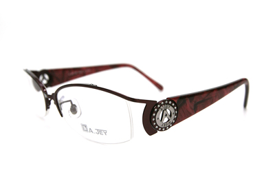 볼륨있는 곡선의 전면 쉐입과 진한 적색의 컬러가 여성미를 극대화 시키고 있다. 앤드피스의 원형 엠블럼을 장식하고 있는 큐빅이 중요 포인트가 되고 있는 성인 여성을 위한 아이웨어이다.02-756-1381