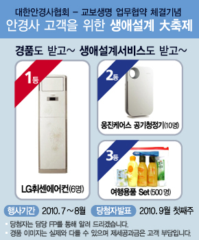 대한안경사협회(회장 이정배)는 지난 7월과 8월 진행했던 ‘안경사 가족을 위한 교보생명 생애설계 大축제’의 이벤트 결과가 발표 되었다고 밝혔다.