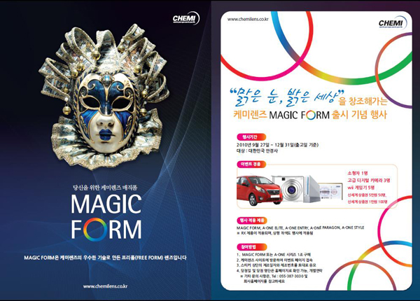 (주)케미그라스(대표 박종길)가 프리폼 가공 렌즈 ‘매직폼’을 오는 27일 출시하면서 출시기념 이벤트 행사를 실시한다고 밝혔다.