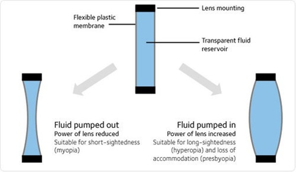 19불짜리 액체안경의 원리는 다음과 같다. 안경다리에 달린 주사기의 실리콘이 고무관을 통해 안경렌즈로 전달되며, 렌즈 두께를 변화시켜 수정체의 두께에 따라 눈의 도수가 변하는 것처럼, 주사기를 이용하여 안경렌즈의 두께를 변화시켜 근시 또는 원시 도수를 보정 할 수도 있다고 한다. 또한 실리콘 오일은 물처럼 쉽게 증발하지 않아 강력한 도수를 가진 오목 또는 볼록렌즈를 만드는데 효과적이라는 것이 연구팀의 설명이다.