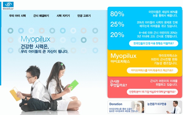 에실로코리아 마케팅 담당 아노 듀퐁 팀장은“한국에서 근시율이 2000년대 이후에 46.2%로 빠르게 증가한 만큼 아이의 시력으로 고민하는 부모들의 온라인상 검색이 잦아질 것으로 예상, 제품의 홈페이지를 별도로 제작해 정보를 제공하게 됐다”고 취지를 밝혔다.