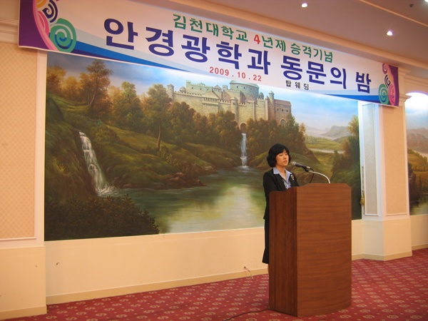 김천대학교 안경광학과(학과장 김진숙)는 오는 28일 본관 4층 안경광학과에서 ‘20주년 동문의 밤’을 연다. 김천대 안경광학과는 1991년 설립돼 1993년 첫 안경사를 배출한 이래 꾸준히 인재양성을 해오고 있으며, 지난해 7월 4년제로 승격됐다.